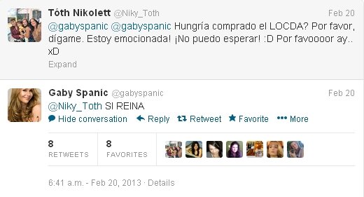 Tavaly májusban elkészült az első magyar rajongói twitter oldal, amit már Gaby is követ :) Ha van twitter oldalatok, akkor kövessétek a csoportot :)